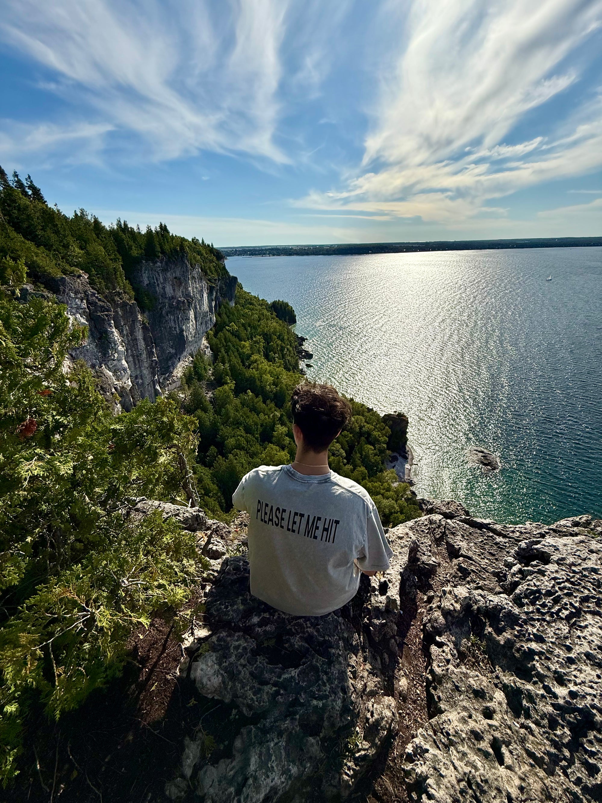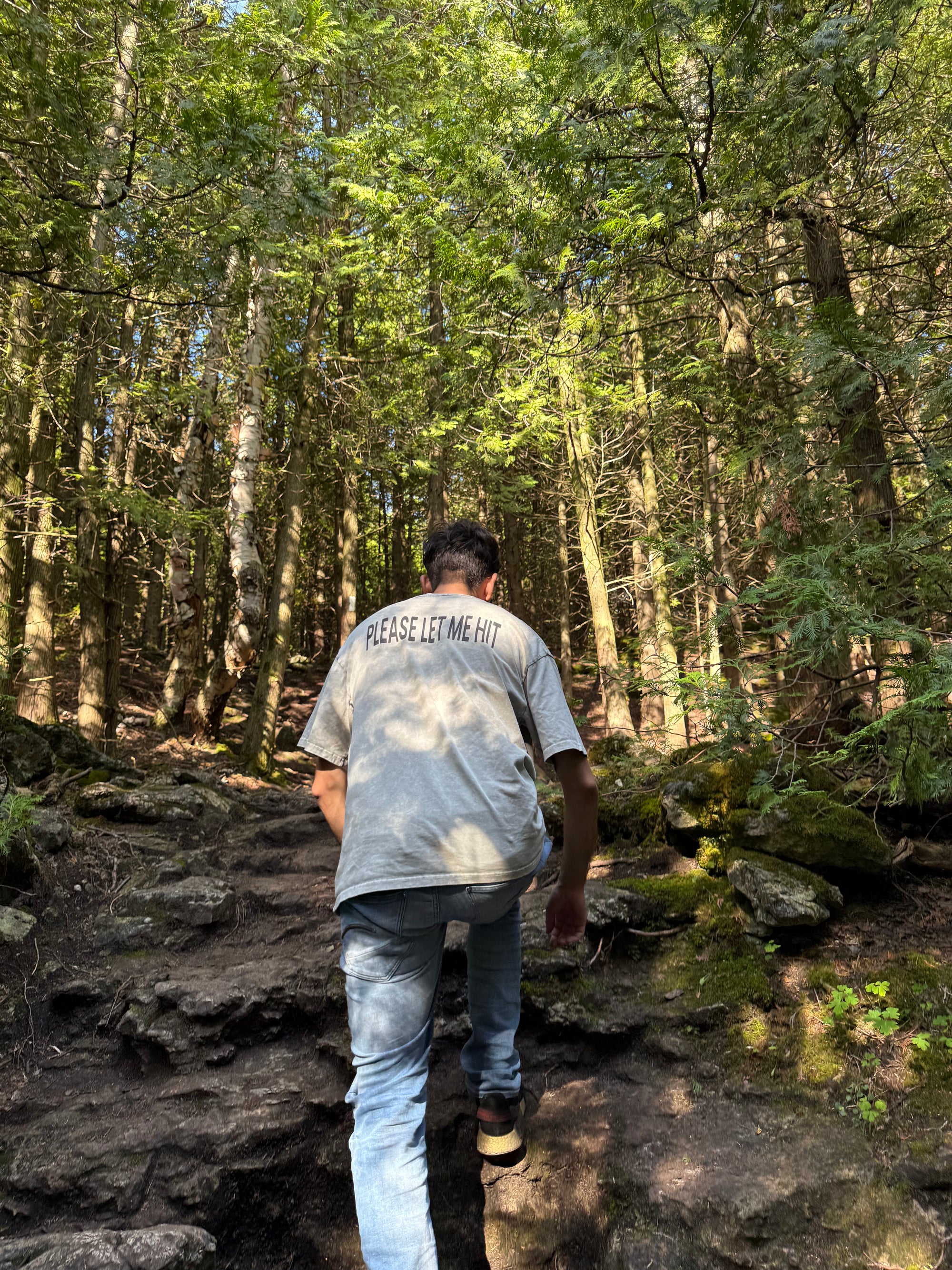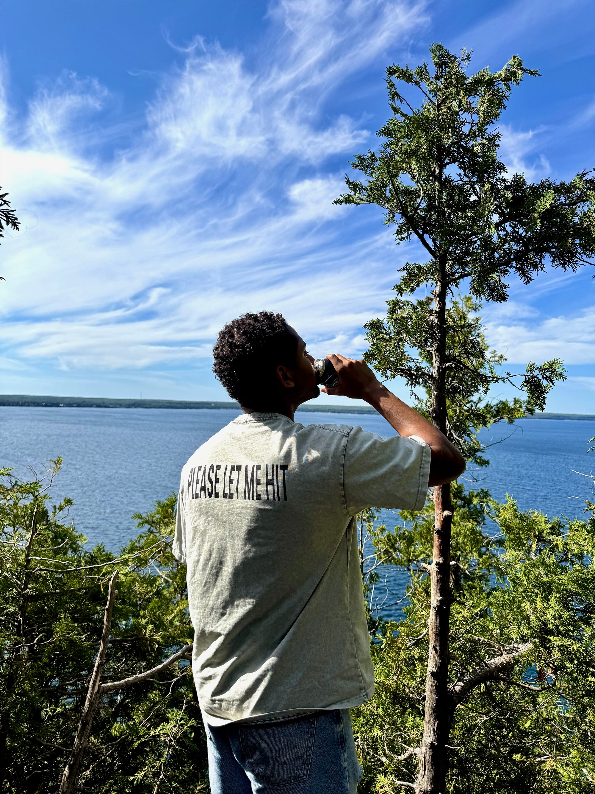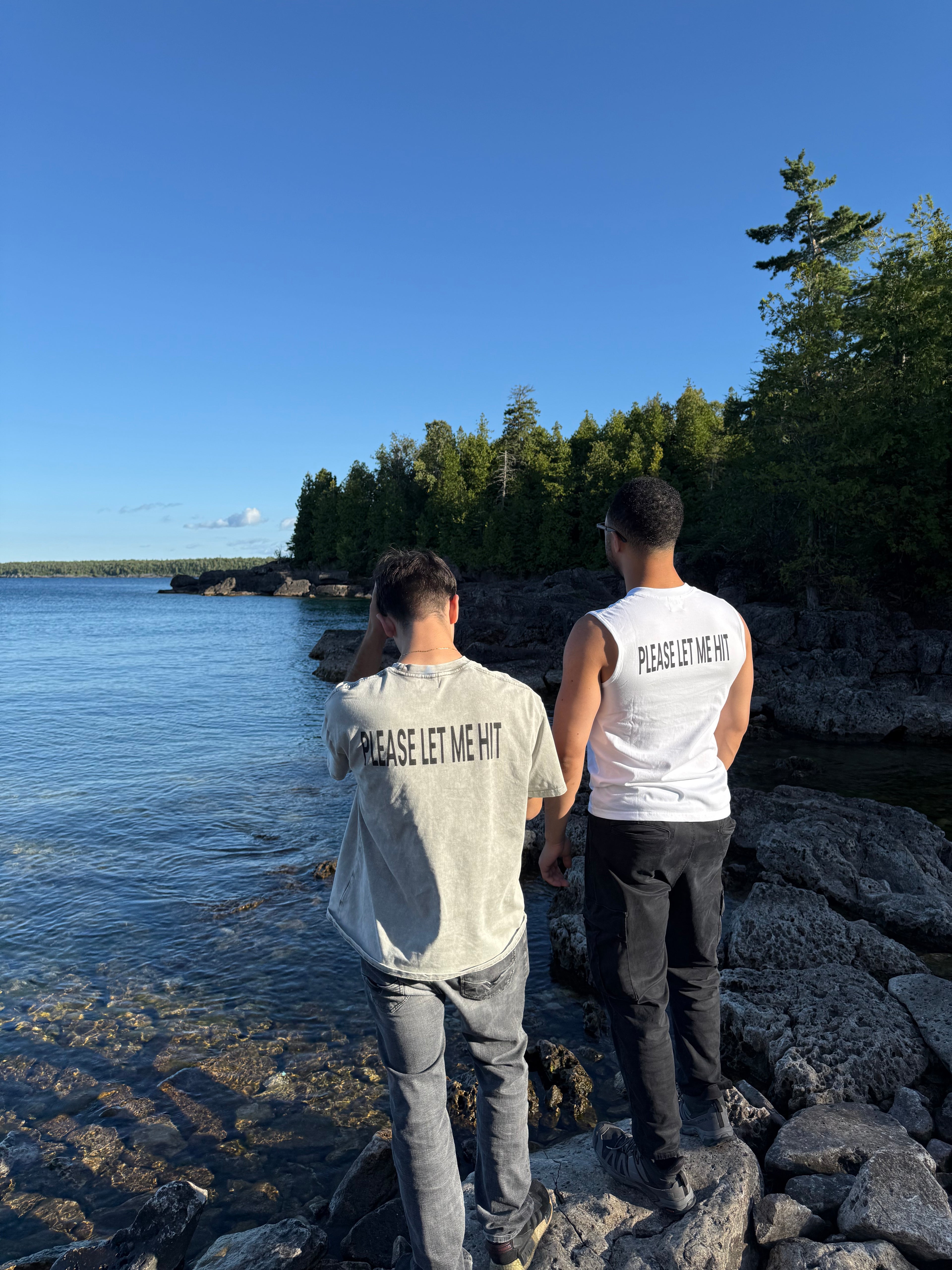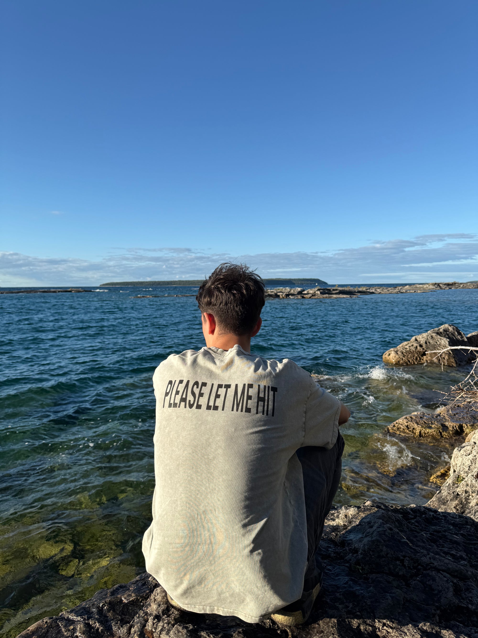 The please let me hit tee: 100% cotton - 250 GSM (heavy weight. Oversized fit, soft, and acid washed for a unique 1 of a kind look (no two wash's come out the same!)